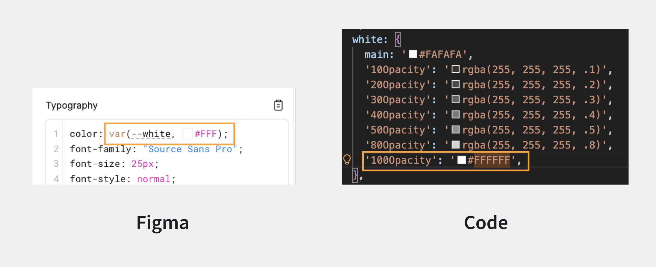 "The specs I get from Figma, like colors and headings, have completely different names or values in code, so I constantly have to look things up."