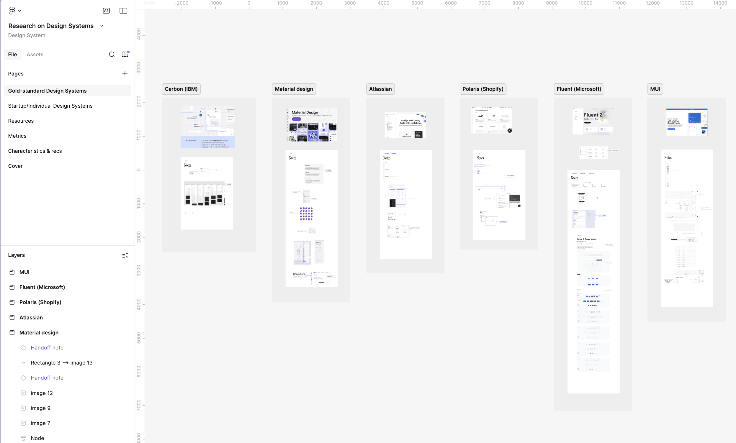 Before making any changes, I audited design systems across the industry to understand how other teams were solving the same problems. I looked at systems like Atlassian, Material Design, and Polaris, as well as community UI kits on Figma. I also pulled from online resources like DesignSystems.one, conference talks from Config, and documentation from teams like Spotify's design system. I took note of how they named colors, organized their file structures, and showcased component variants.