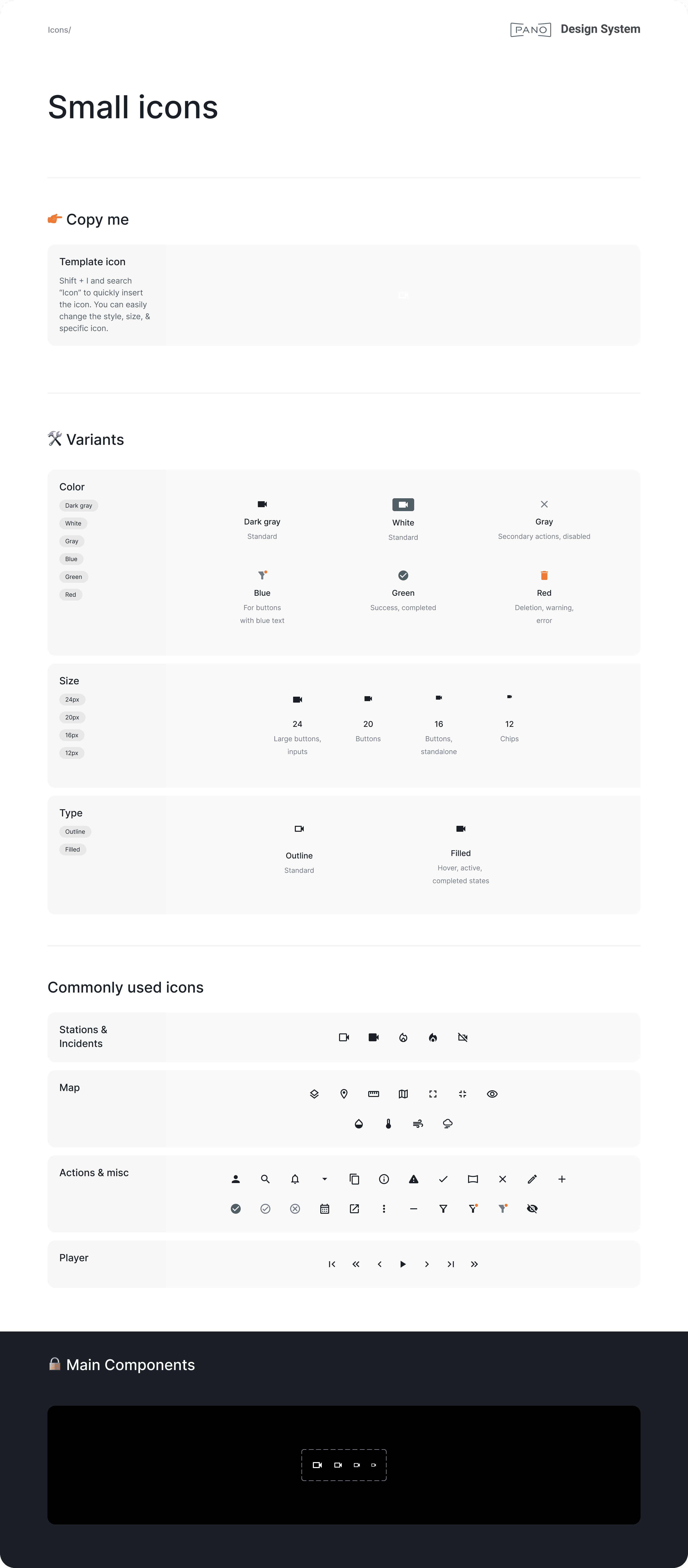 Icons in Figma were disorganized, with no clear system for variants or usage guidelines. The app also had a mix of outline (just the stroke) and filled (solid) icons with no consistency. I reorganized the icon library, defined variants for color, size, and type, and drove alignment with the design team on conventions, such as using outlined icons by default, and filled for their hover and active states.